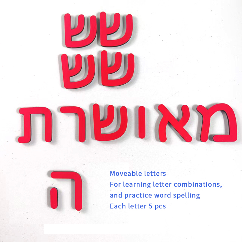 Hebrew small moveable alphbet letters,This set contaians 27 Hebrew letters ,each letter 5 pcs. Children can practise spelling with them