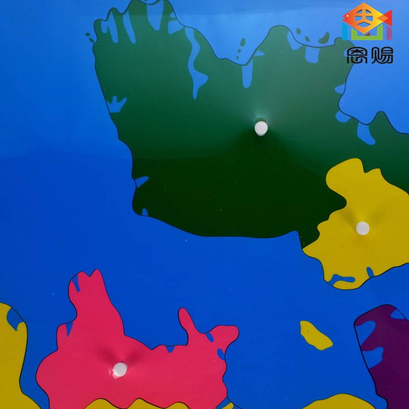 Specially designedËœknobs on each puzzle piece make them easy to remove, and are positioned on the location of the capitals of the countries and states.
